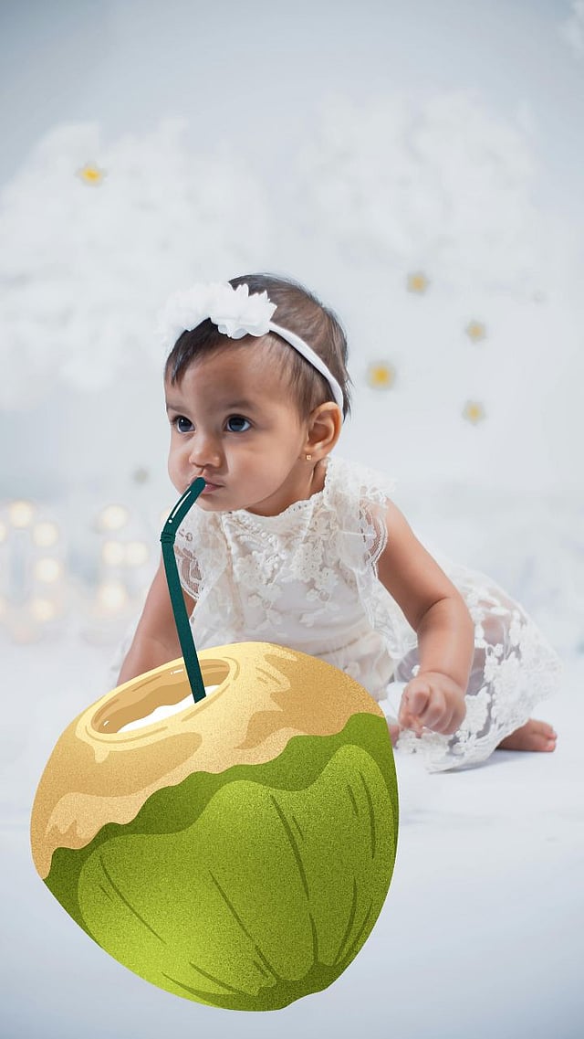 ६ महिने पूर्ण झाल्यानंतर, तुम्ही थोड्या प्रमाणात नारळपाणी देऊ शकता. १ ते २ चमचेने सुरुवात करा आणि हळूहळू प्रमाण वाढवा.