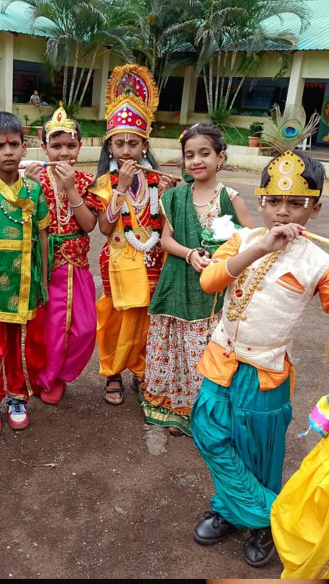 यावेळी शाळकरी मुलांनी बाल कृष्णची वेशभुषा करून लक्ष वेधून घेतले