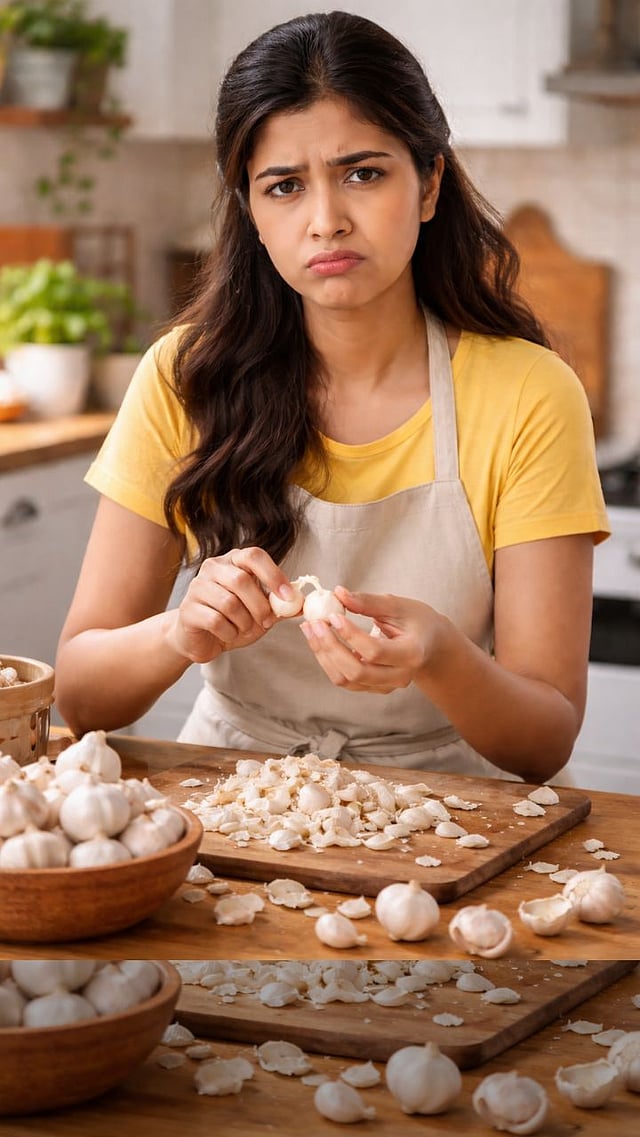 लसूण सोलताना हाताला चिकटू नये म्हणून बोटांना थोडे तेल लावा, यामुळे काम अधिक वेगाने आणि सुलभतेने होते.