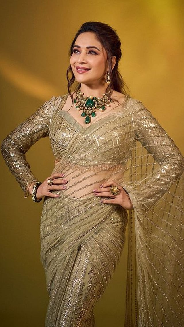 साडीत माधुरीचं सौंदर्य फुलून दिसत आहे.