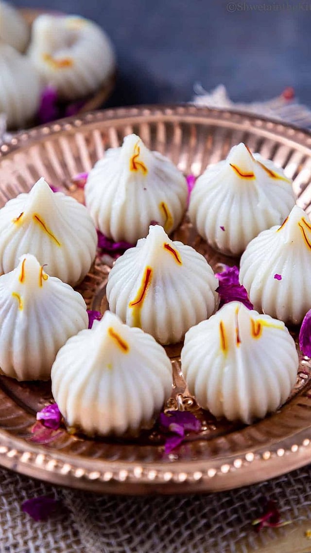 नारळ आणि मिल्कमेडपासून नारळाचे मोदक बनवले जातात. हे तयार करण्यास सोपे आहे आणि उत्सवाच्या प्रसादासाठी परिपूर्ण आहे.