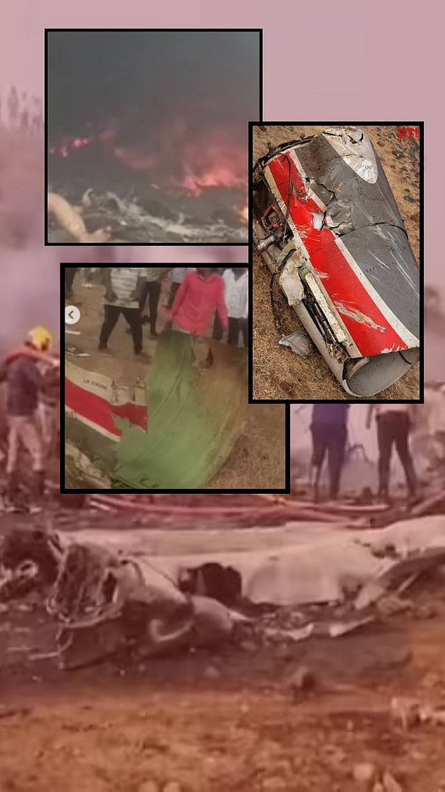अजित पवारच्या विमानाचे तुकडे घटनास्थळी पडलेले दिसून येतय. संपुर्ण विमान जळून खाक झालं आहे.