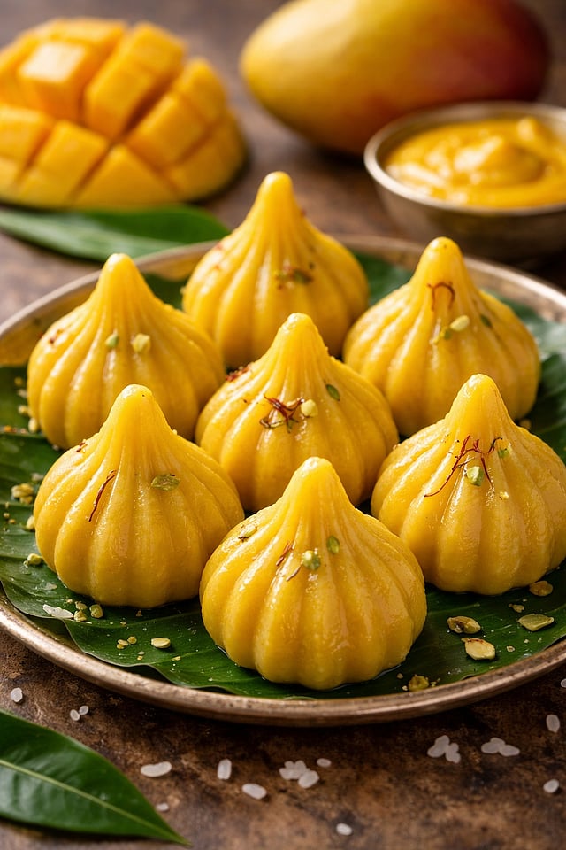 या मोदकासाठी लागणारं साहित्य म्हणजे पिकलेला आंबा, किसलेलं ओलं खोबरं, गुळ, तूप, वेलची पावडर