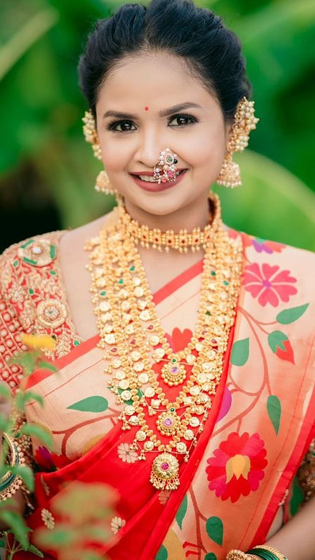 अपूर्वाने सुंदर लाल रंगाची फ्लोरल डिझाईनची पैठणी नेसली आहे.