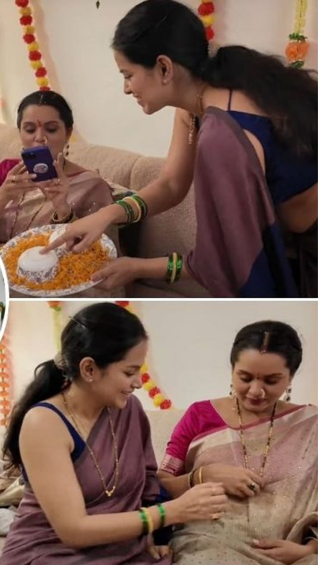 घरीच साध्या पद्धतीने आणि मोजक्या नातेवाईकांच्या उपस्थितीत खुशबूचं डोहाळे जेवण झालं आहे.