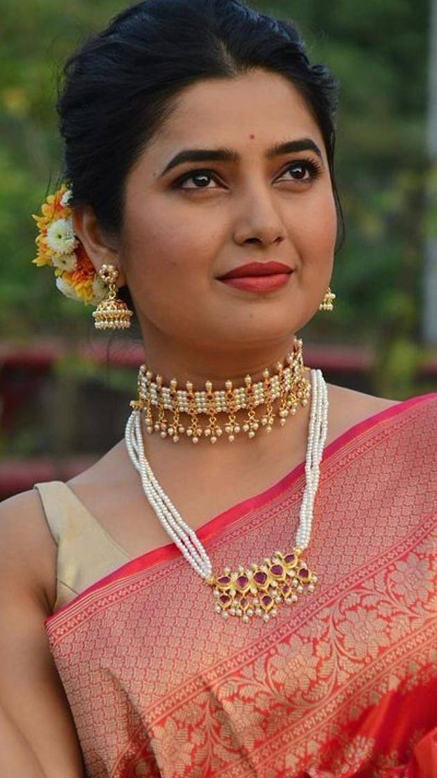 या साडीवर प्राजक्ताने महाराष्ट्रीयन पद्धतीची ज्वेलरी कॅरी केली आहे. चिंचपेटी, तन्मणी आणि कानातील झुबे अशी स्टेटमेंट ज्वेलरी तिने घातली आहे.