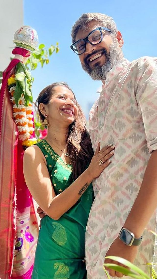 मृणमयी देशपांडेनं आपल्या पतीसोबत पारंपरिक पद्धतीनं गुढीपाडवा साजरा केला.
