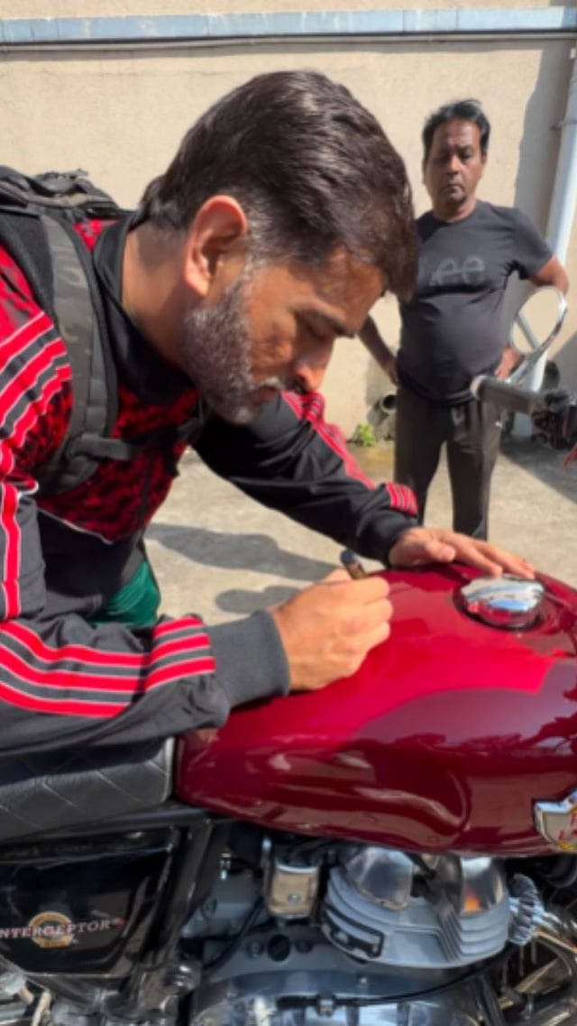 नुकतेच धोनीचा असाच एक व्हिडिओ सध्या व्हायरल होत आहे, ज्यात तो त्याच्या फॅनच्या बाईकवर ऑटोग्राफ देत आहे.