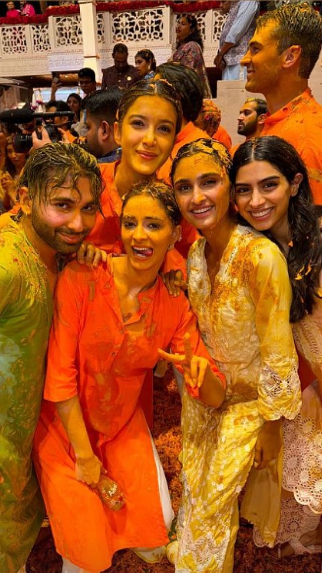 अनंताच्या हळदीला ऑरी आणि या सगळ्या मित्रांनी खूप धमाल केली. हळदीच्या रंगात रंगलेले त्यांचे लूक सोशल मीडियावर व्हायरल झाले आहेत.