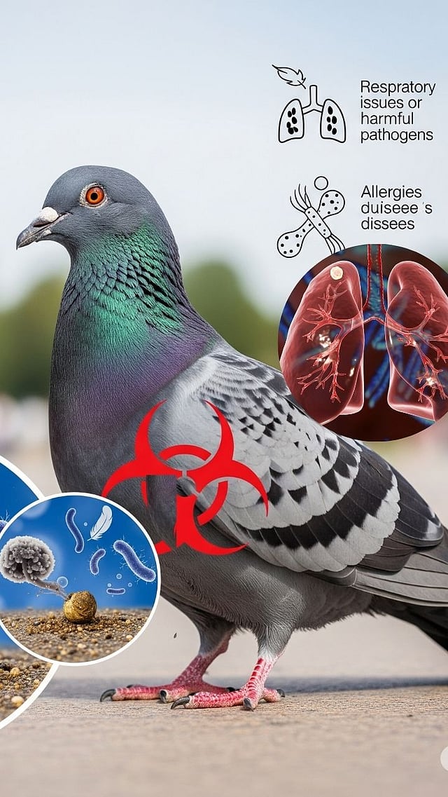 कबुतरांच्या विष्ठेमध्ये बुरशी, बॅक्टेरिया आणि प्रथिने असतात जे श्वसनास धोका निर्माण करतात.