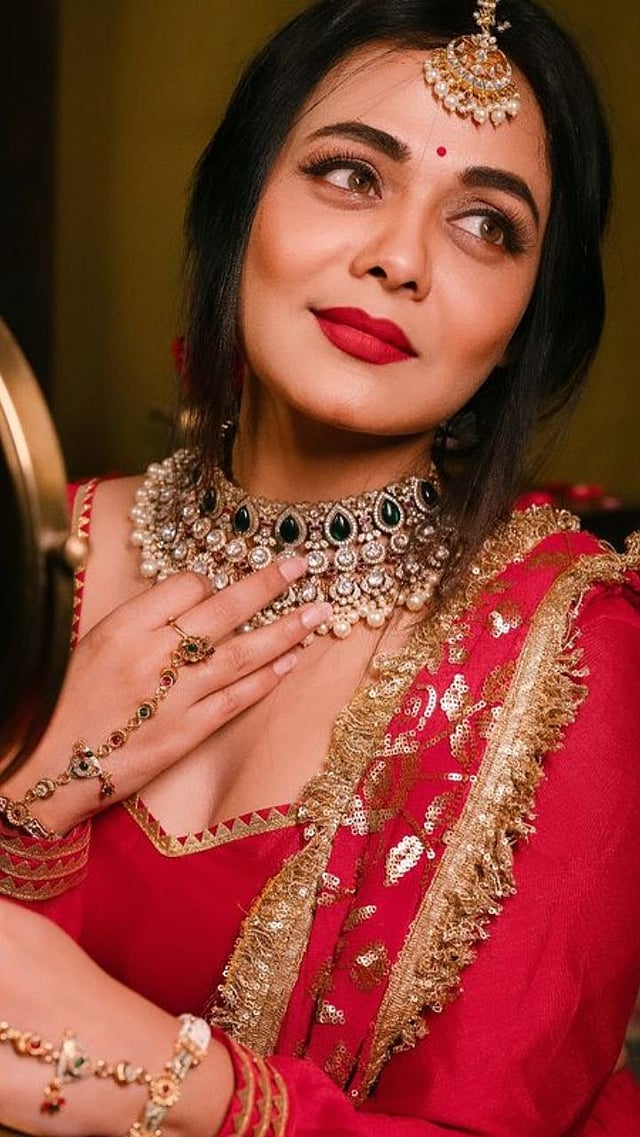 नुकतेच तिने लाल रंगाच्या भरजरी अनारकली ड्रेसमध्ये फोटोशूट केले आहे.