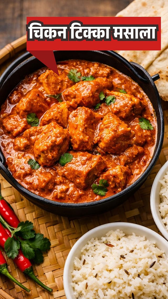 ग्रेव्हीला छान लाल रंग आला की वरून कोथिंबीर टाका. तयार आहे हॉटेल स्टाईल चिकन टिक्का मसाला!