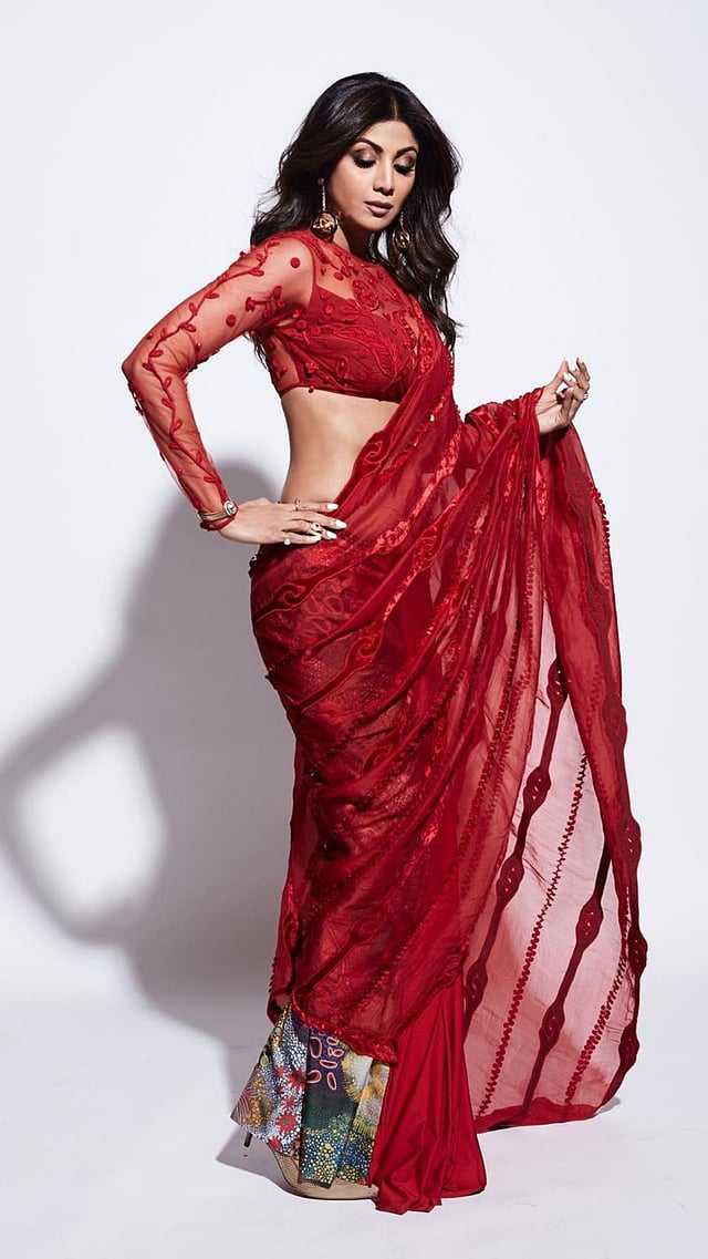 नुकतेच शिल्पाने लाल रंगाच्या साडीवरचे फोटो शेअर केले आहेत
