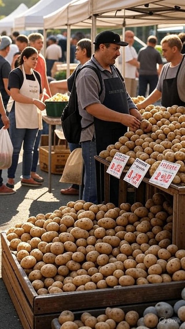 भारतात बटाट्याची किंमतसाधारण ₹10 प्रति किलोपासून सुरू..अमेरिकेत 2.5 किलो किंमत$3.84 (सुमारे ₹319)..अमेरिकेत प्रति किलो किंमत₹140 ते ₹150..दुबईत प्रति किलो किंमत3 दिरहम..दुबईत रुपयांमध्ये किंमतसुमारे ₹71 प्रति किलो..तुलनाअमेरिकेपेक्षा दुबईत बटाटे स्वस्त..निष्कर्षभारतात सर्वात स्वस्त, अमेरिकेत सर्वात महाग बटाटे..रोनाल्डोने जिच्यासोबत साखरपूडा केला, ती आहे तरी कोण?.येथे क्लिक करा