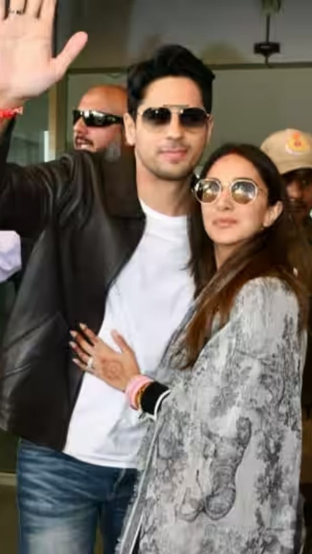 तर सिद्धार्थ लेदर जॅकेटमध्ये सुंदर दिसत होता. दोघांनी विमानतळावर पापाराझींनी एकत्र अनेक पोज दिल्या.