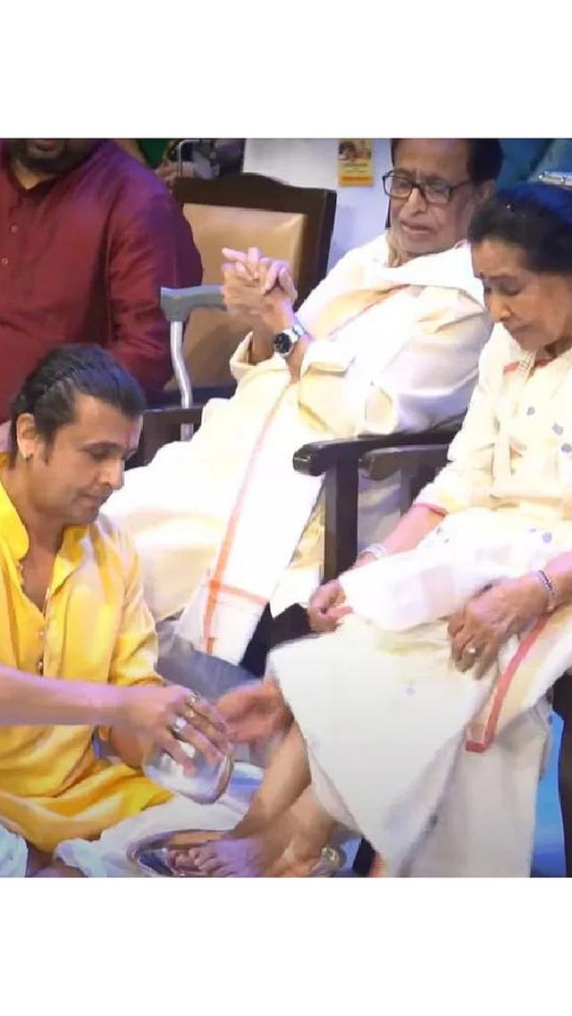 यावेळी गायक सोनू निगमने आशाताईंचे पाय गुलाबजलने धुतले आणि त्यांचा आशीर्वाद घेतला.