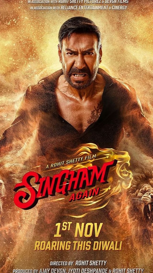 सिंघम अगेन' चित्रपटात अजय देवगन आणि करिना कपूर हे मुख्य भूमिकेत आहेत.