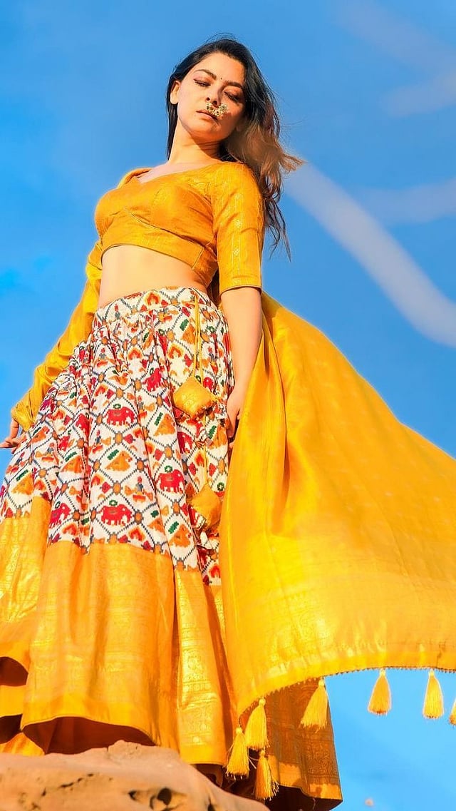 गोल्डन ड्रेस, नाकात नथ, आणि मोजकीच आभुषणं घालत सोनालीनं या ट्रेडिशनल लूकला स्पेशल टच दिला आहे.