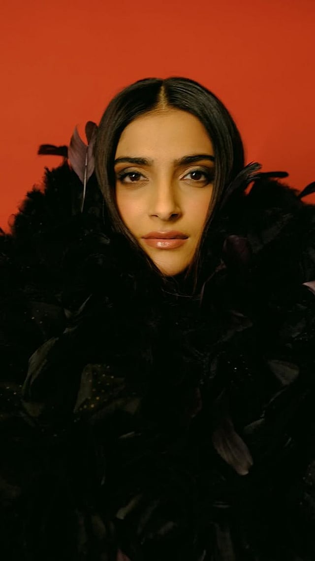 सोनमने ब्लॅक वनपीसवर ब्लॅक ओव्हरकोट घातला होता. तसंच स्ट्रेट हेअरसोबत तिने तिचा लूक पूर्ण केला.
