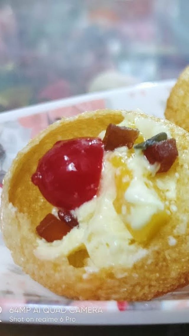 २० पाणीपुरी, २५० ग्रॅम व्हॅनिला आईसक्रीम, पाव कप रोझ सिरप, टुटी फ्रुटी, चेरी