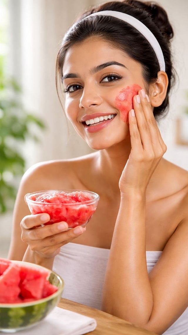 कलिंगडाचा रस आणि दही किंवा मध एकत्र लावा, १० मिनिटांनंतर धुऊन टाका – त्वचा अधिक उजळ दिसते.