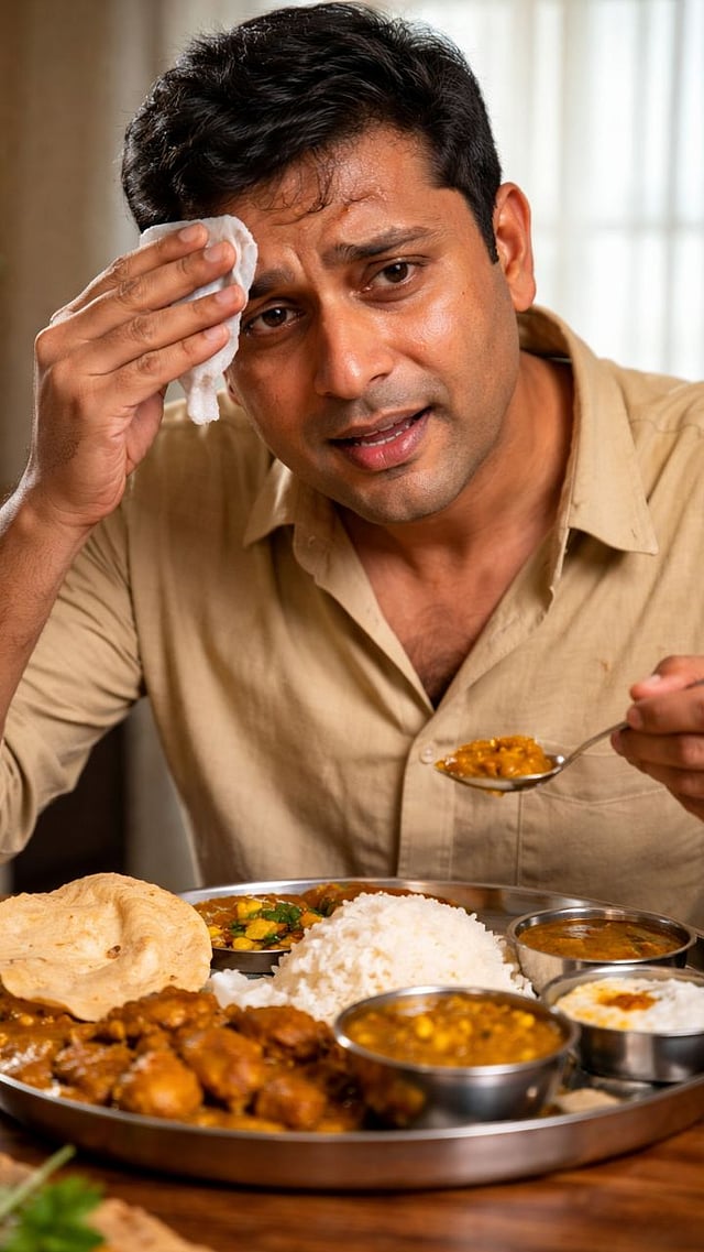 जेवताना घाम येण्याच्या समस्येला वैद्यकीय भाषेत गस्टेटरी स्वेटिंग असे म्हणतात आणि ते अनेकदा मसालेदार अन्नामुळे होते.