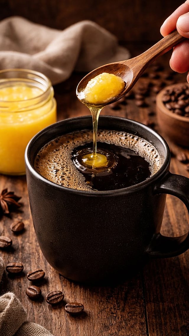 हे पेय तयार करण्यासाठी १ कप गरम ब्लॅक कॉफीमध्ये १ चमचा शुद्ध देशी तूप मिसळा आणि ते व्यवस्थित फेटून घ्या.