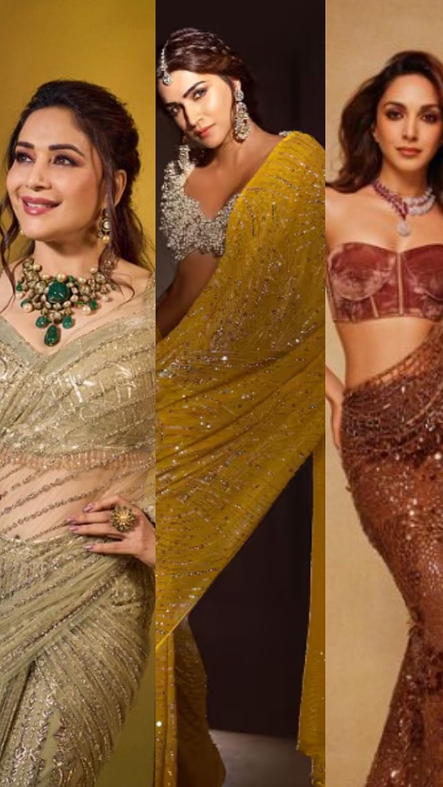 माधुरी दीक्षितने नेसलेली सोनेरी रंगाची ही सिक्वेन्स साडीही दिवाळी पार्टीसाठी बेस्ट ऑप्शन आहे.