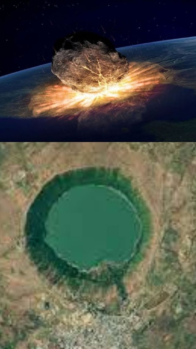 या सरोवराची निर्मिती सुमारे ५,७६,००० वर्षांपूर्वी एका प्रचंड उल्कापिंडाच्या धडकेतून झाली. तेव्हा कॅमेरा नव्हता पण कल्पनाशक्तीच्या जोरावर अनेक फोटो तयार केले आहेत.