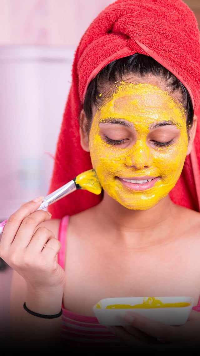 हळद त्वचावरील डाग, काळे डाग आणि रंगफिकटपणा दूर करण्यास मदत करते.