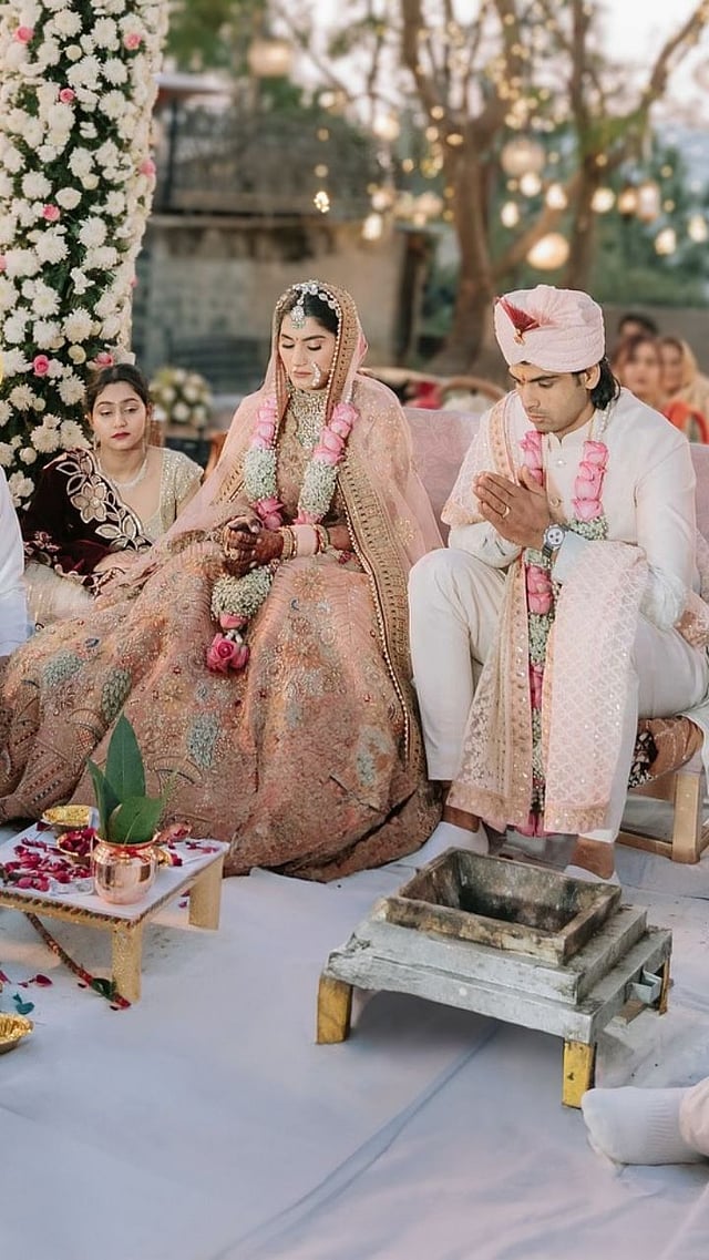ऑलिम्पिक गोल्डन बॉय नीरज चोप्राने हिमानी मोर हिच्यासोबत लग्न केले आणि फोटो पोस्ट केले.
