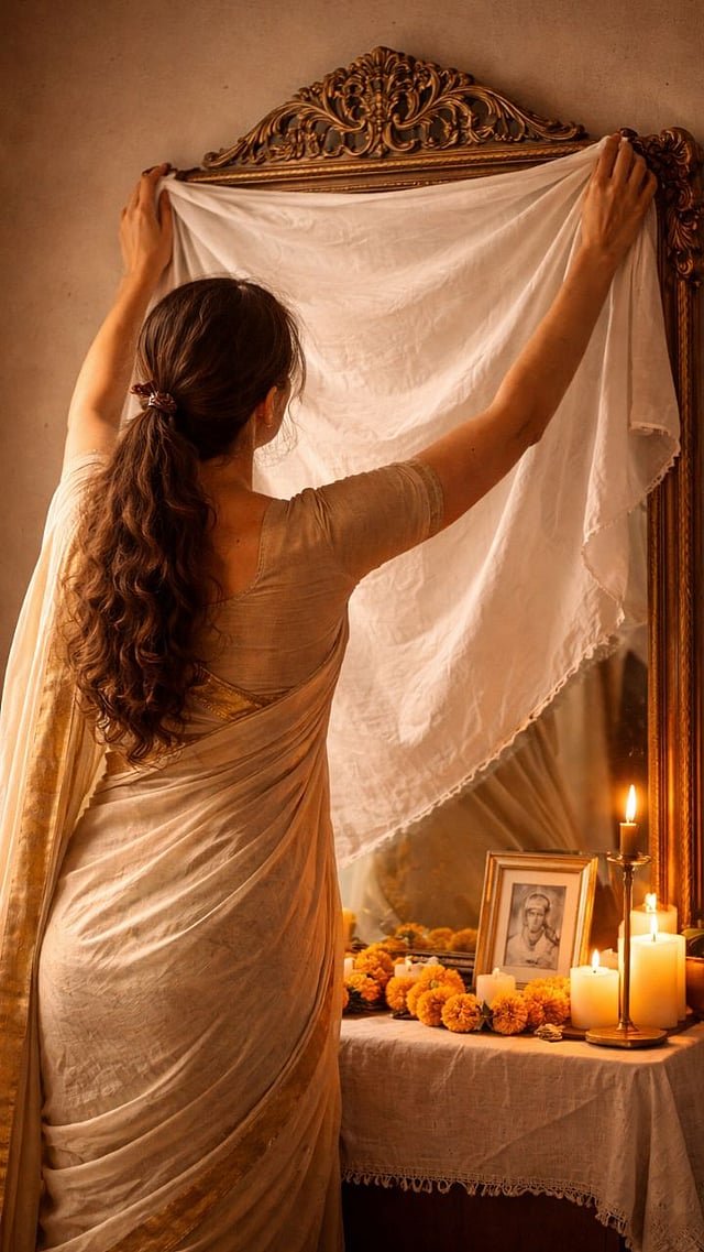 दुःखाच्या वेळी आरशात स्वतःचे रूप न्याहाळणे हे अशुभ आणि मृतात्म्याचा अनादर करणारे लक्षण मानले जाते.