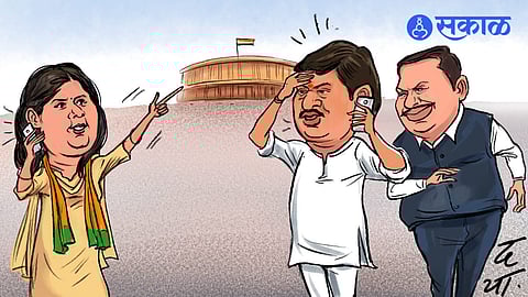 भाऊरायाः (खोटी खोटी समजूत काढत) कोण म्हणतं असं? तसं नाही हां ताई... आमची ताई स्ट्राँग आहे खूप स्ट्राँग! ताई लढणार-जिंकणार-दिल्लीला जाणार.. आम्ही बिचारे परळी धाममध्येच राहणार!