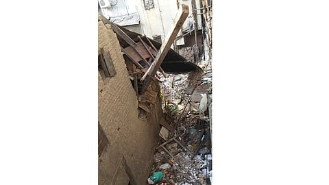 पुणे : रविवार पेठेत पुणे महानगरपालिकेच्या दवाखान्याच्या डावीकडील घर क्रमांक ५३० इमारतीचा भाग ढासळला आहे. इमारतीचा राडारोडा गल्लीत गेले दोन-तीन महिन्यांपासून पडला आहे. उर्वरित भाग कधीही पडू शकतो. त्यामुळे येथील स्थानिक रहिवाशांच्या जीवितास धोका उत्पन्न झाला आहे. तसेच इमारतीचा राडारोडा व कचरा साठल्याने त्या भागातील नागरिकांच्या आरोग्यास धोका निर्माण झाला आहे. तरी महापालिकेने याची दखल घेण्याची गरज आहे. याबाबत त्वरित कारवाई करण्याची आवश्यकता आहे.