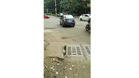 पुणे : औंध येथील अत्यंत वर्दळीच्या परिहार चौकात स्मार्ट सिटी योजने अंतर्गत नव्यानेच रस्ता बनविण्यात आला. मात्र या कामात चेंबरचे बांधकाम नित्कृष्ट दर्जाचे झाले असल्याचे दिसून येत आहे. परिहार चौकातच चेंबर खचला असून त्यावरील सिमेंट निघून गेले आहे. त्यावरील लोखंडी सळ्या उघड्या पडल्या असल्याने अपघाताची शक्यता निर्माण झाली आहे. वाहनांची व नागरिकांची वर्दळ असणाऱ्या या चौकात सुरक्षिततेचा प्रश्न निर्माण झाला आहे. तरी महापालिका लक्ष देईल काय ?