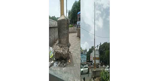 विद्युत खांबाला आधार देण्यासाठी बांधलेला पाया तुटलेला आहे. विना आधाराचा हा विद्युत खांब सोसाट्याच्या वाऱ्याने कधीही खाली पडू शकतो. सदर विद्युत खांब काढून टाकणे अत्यंत आवश्यक आहे नाहीतर मोठी दुर्दैवी घटना घडू शकते. लोकप्रतिनिधी, वाहतूक विभाग आणि एमईसीव विभागाने याची गंभीर दखल घ्यावी.