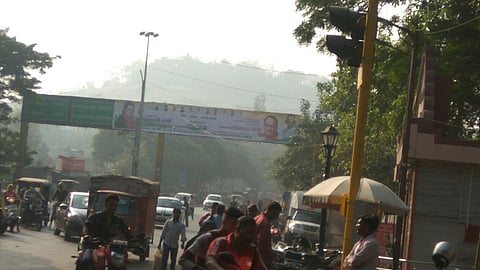 पुणे : दांडेकर पूलावर दिशादर्शक फलकावर लावलेला एका राजकीय पक्षाचा फ्लेक्स लावण्यात आला आहे. मंगळवार पेठेतील दुर्घटनेनंतरही बेकायदा फ्लेक्सचा गंभीर प्रश्न कायम आहे. कोर्टाच्या आदेशाचे उल्लंघन केल्याप्रकरणी संबंधित राजकीय पक्षांवर आता कायदेशीर कारवाईची वेळ आली आहे. तरी याची दखल घेवून प्रशासनाने याकडे लक्ष द्यावे