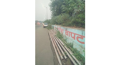 पुणे : बाबा भिडे पुल म्हणजे भंगार टाकण्याचा डेपो बनला आहे. या पुलावर कचरा, राडारोडा, बेवारस वाहने, मेट्रोचे साहित्य भंगारात पडलेले दिसते. परंतु आता महापालिका प्रशासनाने या पुलावर विद्युत खांब ठेवल्याचे दिसून येत आहेत. असा प्रकारे रस्त्यावर, फुटपाथवर अनेक दिवसांपासून पडुन आहेत.