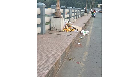 पुणे : एस. एम. जोशी पुलावर दोन्ही बाजूस निर्माल्याचा ढीग साचलेला दिसतो. कित्येक दिवस तो तसाच पडून आहे. महानगरपालिकेने त्वरित निर्माल्य कलश हटविण्याची व्यवस्था करावी.