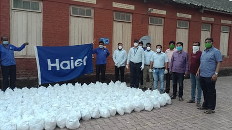 तळेगाव ढमढेरे : रांजणगाव गणपती (ता. शिरूर) एमआयडीसीतील हायर अप्लायन्सेस कंपनीतर्फे हातावरचे पोट असणाऱ्या मजुरांना अन्नाची भूक भागविण्यासाठी ७५० किट्स दिले आहेत. लॉकडाऊनच्या काळात गोरगरीब मजुरांना कंपन्यांनी मदत करावी, असे आवाहन खासदार डॉ. अमोल कोल्हे यांनी केले आहे. त्यानुसार तत्काळ प्रतिसाद देत हायर ऍप्लायन्सेस (इंडिया) कंपनीने ७५० किट्स उपलब्ध करून दिली आहेत.