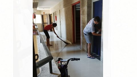 शहरातील अनेक मोठ्या सोसायट्यांमध्ये खाजगी एजन्सीद्वारे सफाई कामगारांची नियुक्ती करण्यात आली आहे. सोसायटीच्या आवारातील घरामधली इमारतीसाठी एक याप्रमाणे कामगारांना नेमण्यात आले आहे. गेल्या काही दिवसांपासून कोरोनाच्या धास्तीमुळे अनेक कामगार त्यांच्या मूळ गावी निघून गेले आहेत. त्यामुळे स्वच्छता कशी राखायची असा प्रश्न या सोसायटीतील रहिवाशांना पुढे होता. मात्र प्रत्येक इमारतीच्या एका मजल्यावर जेवढे सदनिकाधारक असतील त्यांनी आलटून पालटून त्या त्या मजल्याची सफाई करण्याचा निर्णय घेण्यात आला आहे. या निर्णयाची अंमलबजावणीही गेल्या आठवडाभरापासून सुरू झाली आहे.