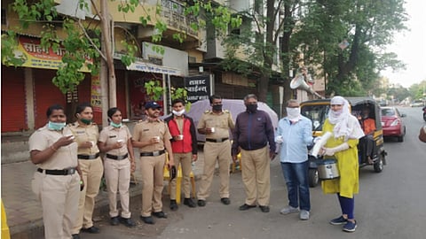 लॉकडाऊनमधे कर्तव्यावर असलेल्या कर्मचा-यांना देताहेत चहा नाश्त्याची सेवा