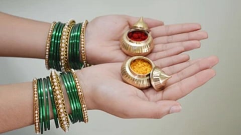Best way to put haldi kunku : हिंदू संस्कृतीत घरी सवाष्ण किंवा कुमारिका आली तर तिला हळद-कुंकू लावल्याशिवाय घराबाहेर पडू दिलं जात नाही. सध्याच्या सणावाराच्या दिवसांमध्ये देवाला, येणाऱ्या महिलांना आणि स्वतःच्या कपाळालाही हळद-कुंकू लावण्याचे अनेक प्रसंग येतात. विवाहितेसाठी ‘कुंकू’ हा सौभाग्यालंकार आहे. हळद-कुंकू लावण्याची शास्त्रात काही पध्दती सांगितल्या आहेत. त्याचा आरोग्यावर थेट परिणाम होतो. त्यामुळे कुंकू कोणत्या बोटानं लावावं? त्याचा आरोग्यावर वाईट परिणाम होण्यापेक्षा जाणून घ्या योग्य पद्धत