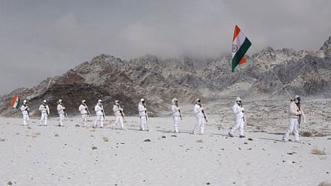 सुमारे 17 हजार फूट उंचीवर असलेल्या लडाखमध्ये जवानांनी बर्फात भारताचा तिरंगा फडकाविला. यावेळी जवानांनी बर्फातून वाट करत एकप्रकारे पथसंचलन केले. जवानांचा हा व्हिडिओ सोशल मीडियावर मोठ्या प्रमाणावर व्हायरल होत आहे. जवानांच्या या कामगिरीचे कौतुक करण्यात येत आहे.