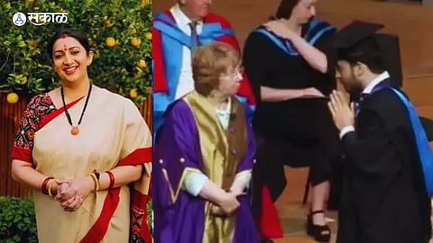 नवी दिल्ली - केंद्रीयमंत्री स्मृती इराणी यांचा मुलगा जोहर इराणी याचं नुकतचं पदवी शिक्षण पूर्ण झालं. मुलाचं पदवी शिक्षण पूर्ण झाल्यानंतर मंत्री स्मृती इराणी भावूक झाल्या आहेत. मुलाच्या पदवीप्रदान समारंभाचा व्हिडीओ शेअर करत त्यांनी मुलासाठी इन्स्टाग्रामवर भावनिक पोस्ट शेअर केली आहे. यावर अनेकांच्या अभिनंदनाच्या प्रतिक्रिया आल्या आहे. तर काहींनी स्मृती इराणी यांच्या पदवींचा मुद्दा मांडला. (Smriti iran News in Marathi)