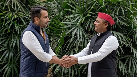 लखनौ : उत्तर प्रदेशातील आगामी विधानसभा निवडणुकीत समाजवादी पक्ष (सपा) आणि राष्ट्रीय लोक दल (रालोद) यांच्यातील युती जवळपास निश्चित झाली आहे. समाजवादी पक्षाचे अखिलेश यादव आणि रालोदचे जयंत चौधरी या दोन्ही पक्षप्रमुखांची आज बुधवारी भेट झाली आहे. या दोघांनीही या भेटीचे छायाचित्र ट्विटरवर पोस्ट केलंय. जयंत यांनी, `बढते कदम' असं तर अखिलेश यांनी, ‘बदलाव की ओर' असं कॅप्शन दिलंय.