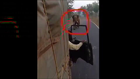 बंगळुरू (कर्नाटक): टेम्पो आपल्या दिशेने येत असल्याचे पाहिल्यानंतर हत्ती चिडला. हत्तीने टेम्पोचा पाठलाग सुरू केल्याचे पाहून चालकही घाबरला. अखेर हत्तीने टेम्पोच्या बोनेटचा चुराडा केला. संबंधित व्हिडिओ सोशल मीडियावर व्हायरल झाला आहे.