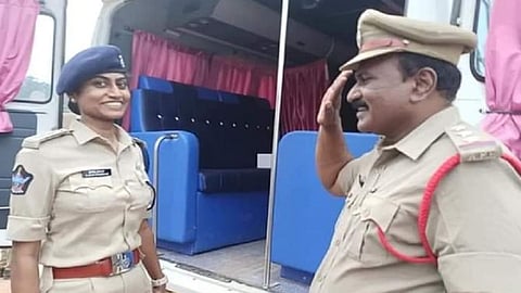 हैदराबाद - आई-वडिलांना आपल्या पाल्याने केलेल्या चांगल्या कामगिरीचं कौतुक असतंच आणि ते अभिमानाने मिरवतात. असाच अभिमानास्पद आणि भावूक असा फोटो सध्या सोशल मीडियावर व्हायरल होत आहे. आंध्र प्रदेशात तिरुपती पोलिस दलात मंडल निरीक्षक असलेल्या वडिलांनी पोलिस उपअधीक्षक झालेल्या मुलीला सॅल्युट केला. सर्वांसमोर केलेल्या या सॅल्युटमुळे सगळेच भावूक झाले होते. आंध्र प्रदेश पोलिस विभागाने हा फोटो ट्विटरवरून शेअर केला आहे.