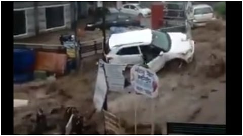धर्मशाला : हिमाचल प्रदेशातील धर्मशाला शहरात ढगफुटी झाली असून त्यामुळे मोठा हाहाकार माजला आहे. येथील मकलोडगंजपासून सुमारे दोन किमी अंतरावरील फागसू येथे सोमवारी सकाळी ढगफुटी झाली. त्यामुळे अचानक पाण्याच्या पातळीत वाढ झाली. यामुळे अनेक घरं आणि हॉटेलांचं मोठं नुकसान झालं आहे. इतकचं नव्हे पर्यटक आणि स्थानिक लोकांच्या कारही या पाण्याच्या वेगामध्ये वाहून गेल्या. (cloud burst in Himachal Pradesh parked Car drown and houses damaged)