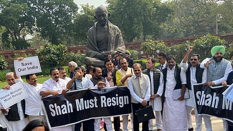 संसदेच्या दोन्ही सभागृहांमध्ये सरकारची कोंडी करण्याची रणनीती काँग्रेसने आखली आहे. अन्य विरोधकांनीही आक्रमकतेचे स्पष्ट संकेत दिल्याने अधिवेशन काळात ‘ऑपरेशन अमित शहा’ हा मुद्दा विरोधक गाजवणार असल्याचे चिन्हे आहेत. अमित शहांनी राजीनामा द्यावा, असे बोर्ड हातात धरून काँग्रेस खासदारांनी संसद आवारातील महात्मा गांधींच्या पुतळ्यासमोर आंदोलन केले. या आंदोलनात काँग्रेस खासदार राहुल गांधी, अधीर रंजन चौधरी, शशी थरूर यांच्यासह काँग्रेसचे प्रमुख नेते उपस्थित होते.